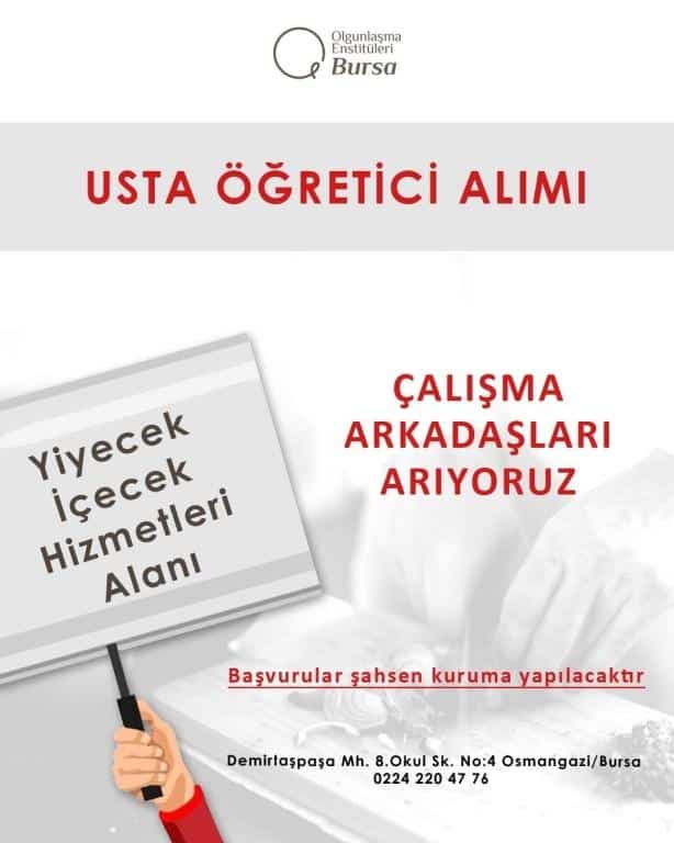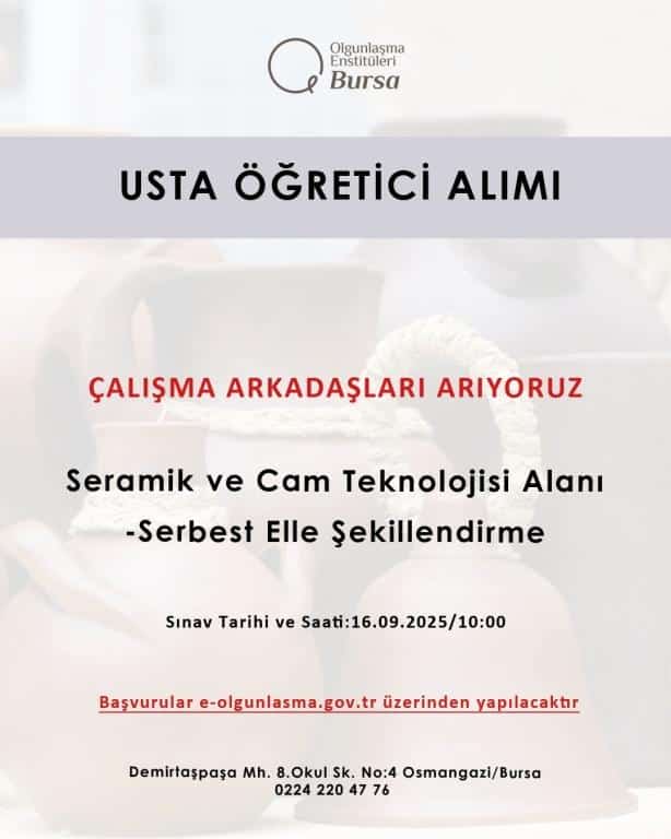2025-2026 Eğitim Öğretim yılında tema/proje kapsamında Yiyecek İçecek Hizmetleri Alanı, Grafik ve Fotoğraf Alanı ve Seramik ve Cam Teknolojisi Alanlarında usta öğretici alımları yapılacaktır.
